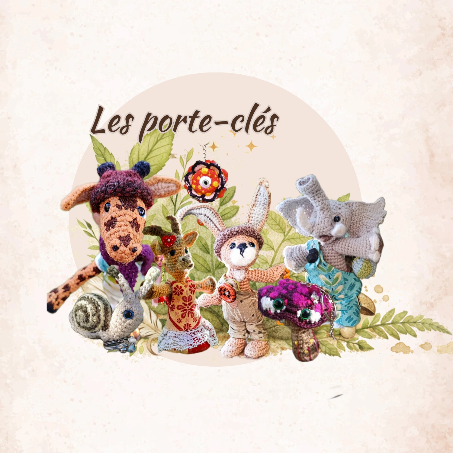 Porte-clés « Qui rend chèvre », Biquette 🦙 Xochi — l’Exploratrice Botanique– crochetée à la main, acrylique, poly-cotons , boutons apprêt
