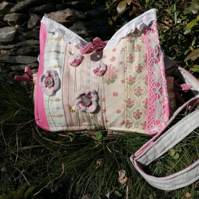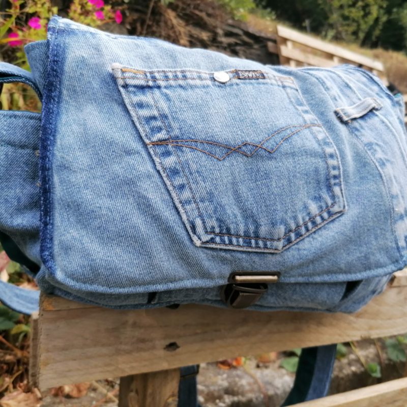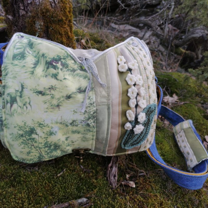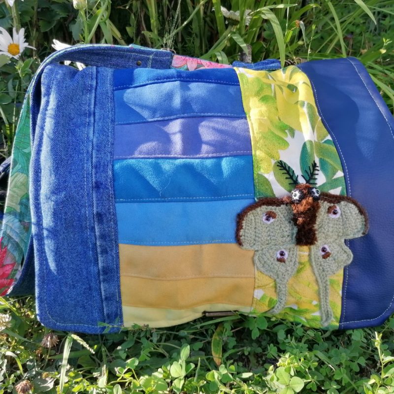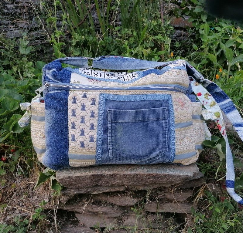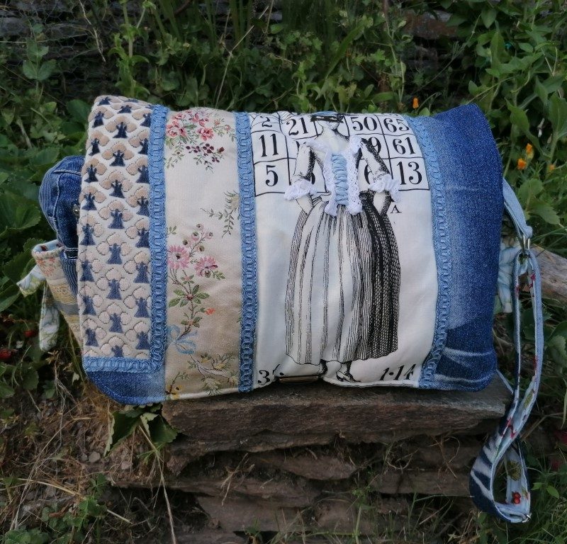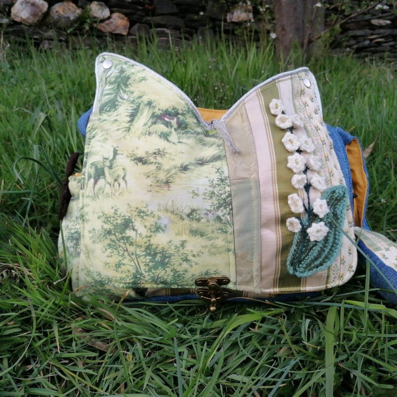 Petite Besace, « Narcisse » , tissus de tapissier, jeans… et coton