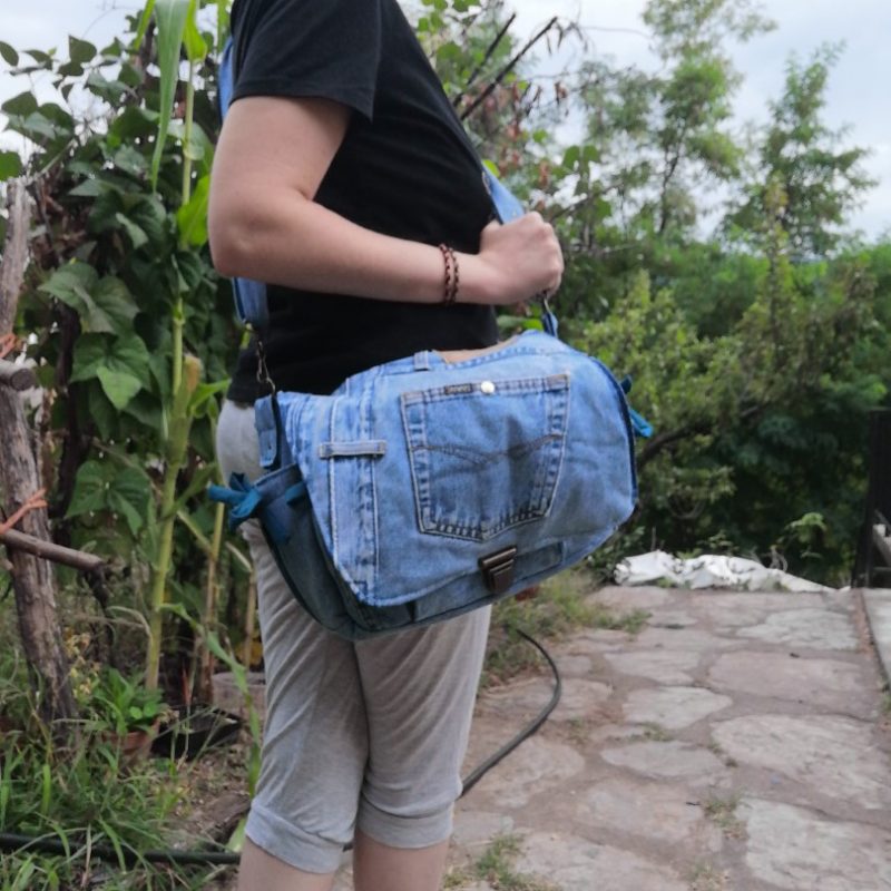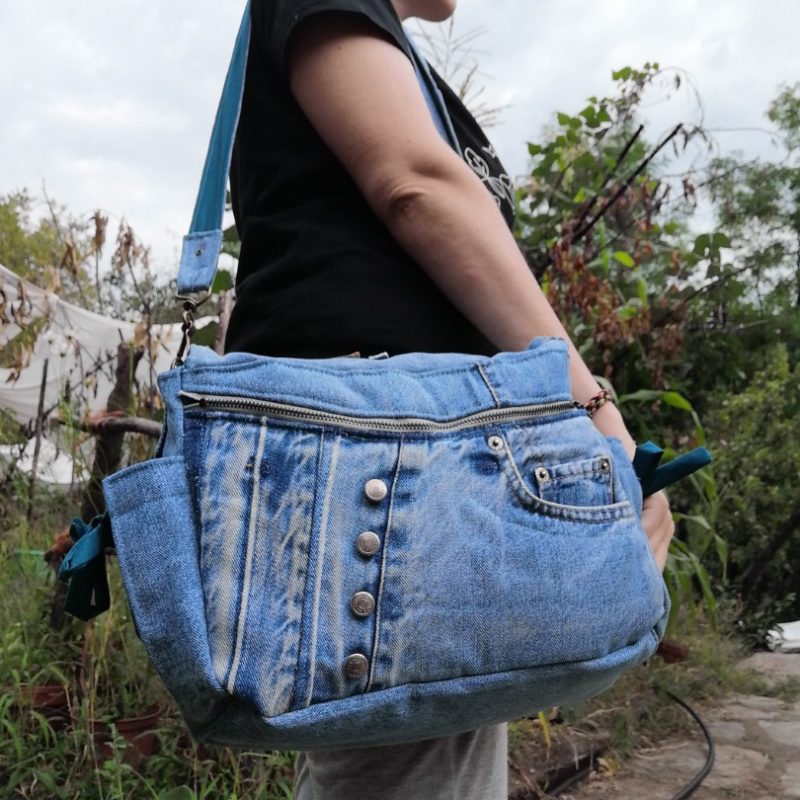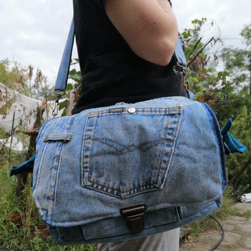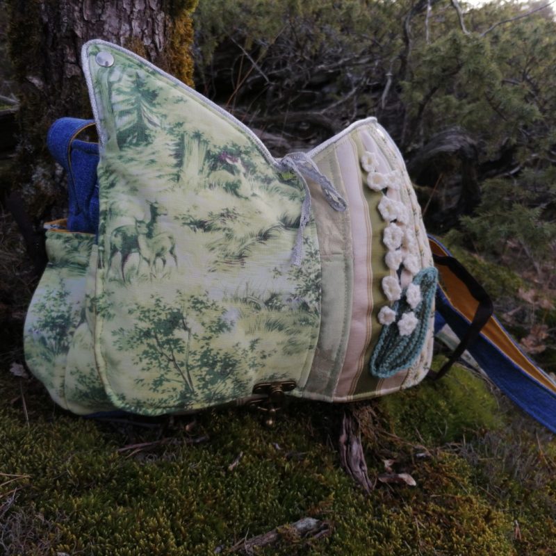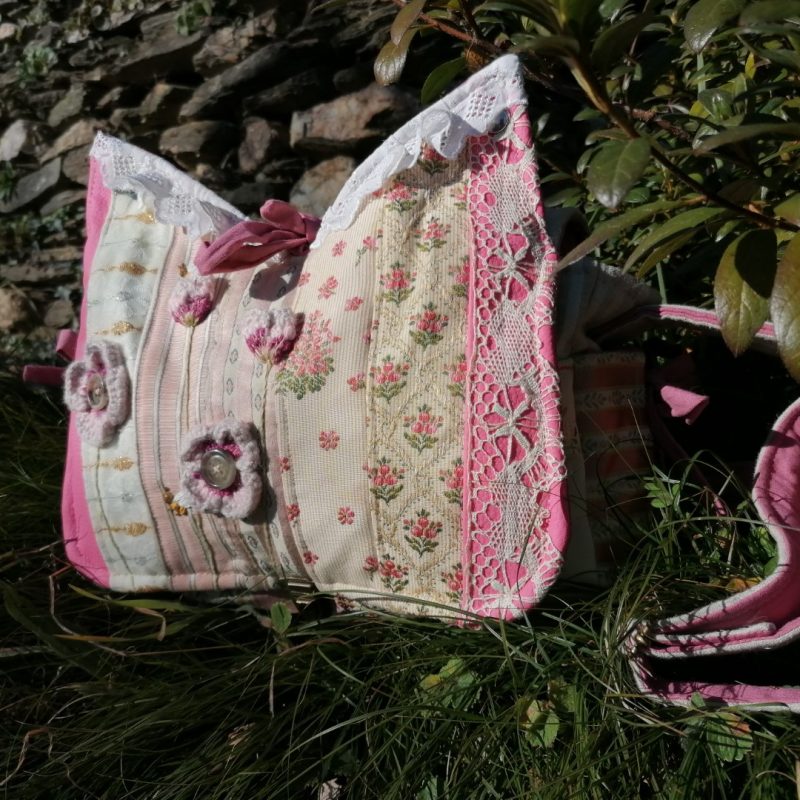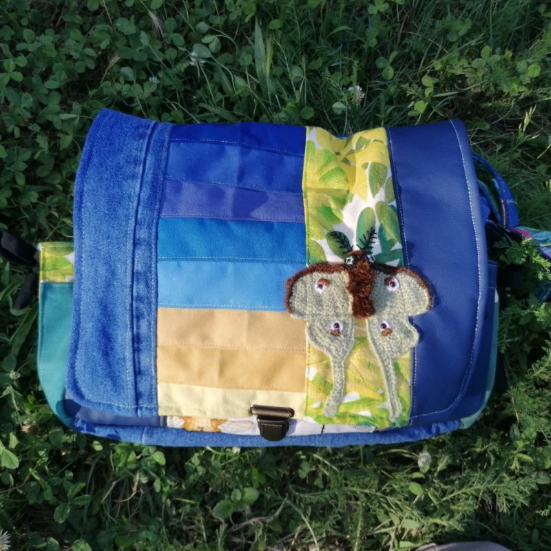 Petite Besace, « Narcisse » , tissus de tapissier, jeans… et coton