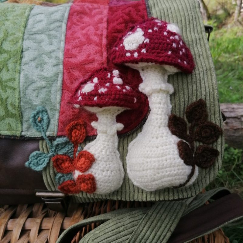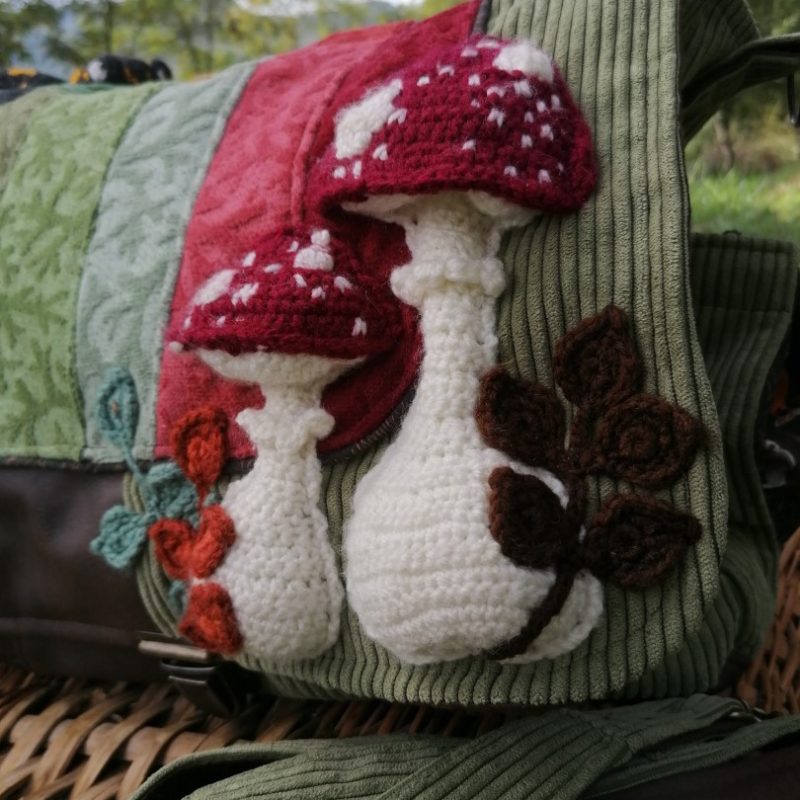 - Animaux & flore de la forêt, Automne, Besaces, Besaces de Survie, Champignons, Par motifs brodés, crochetés,...