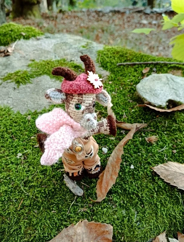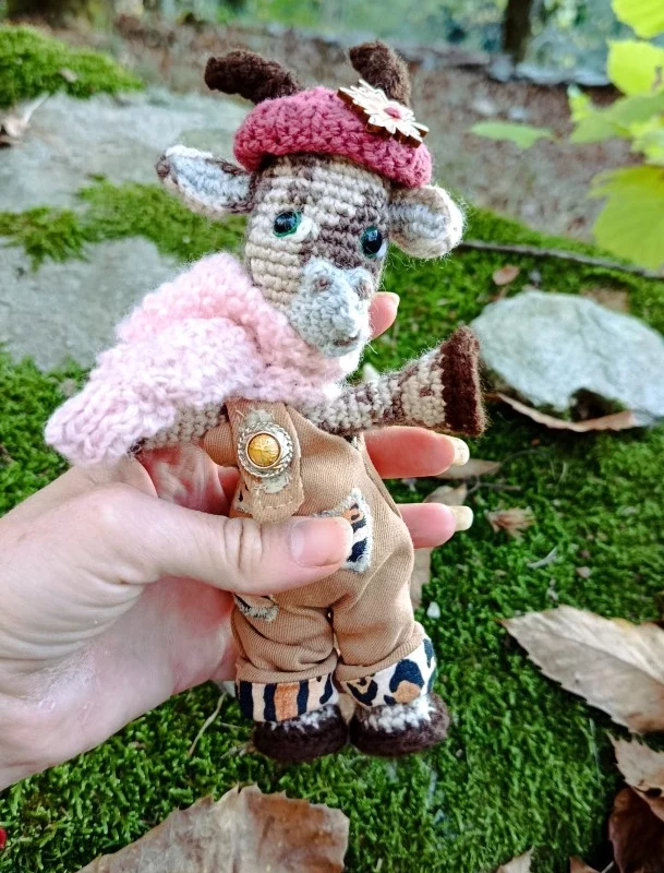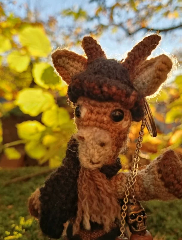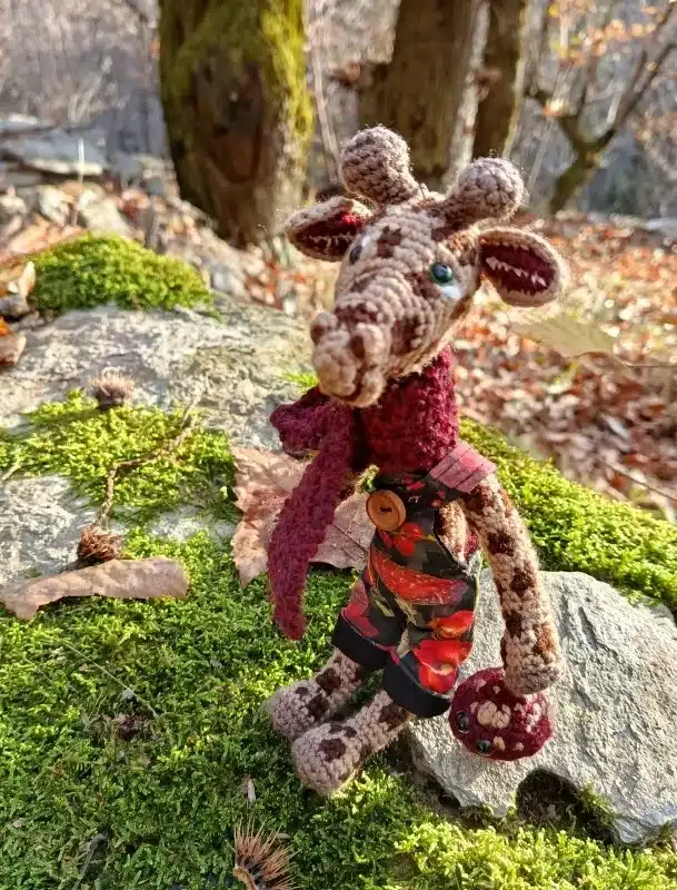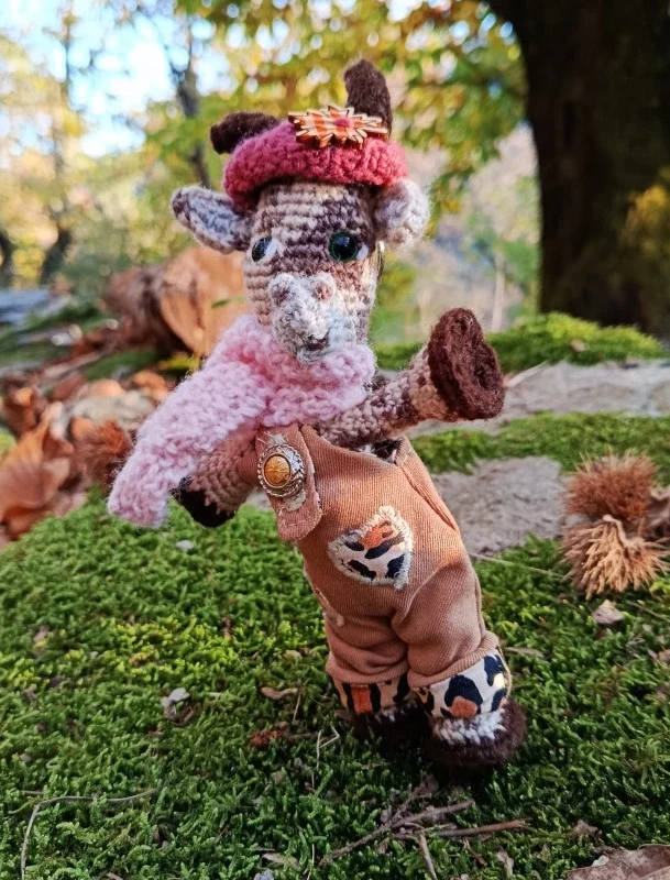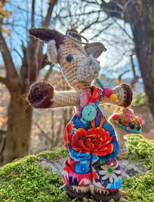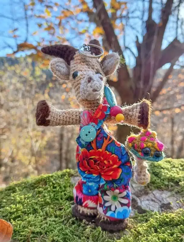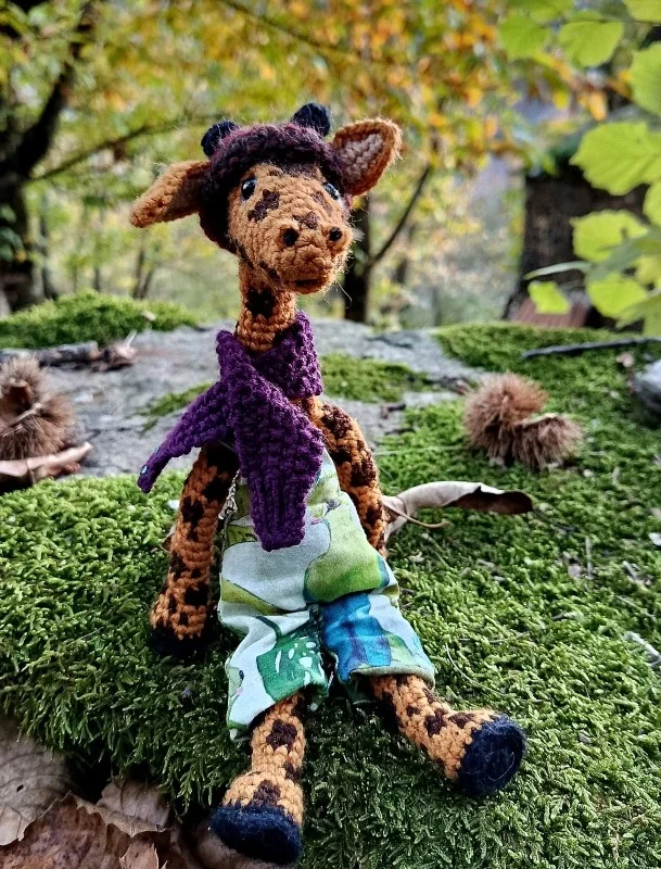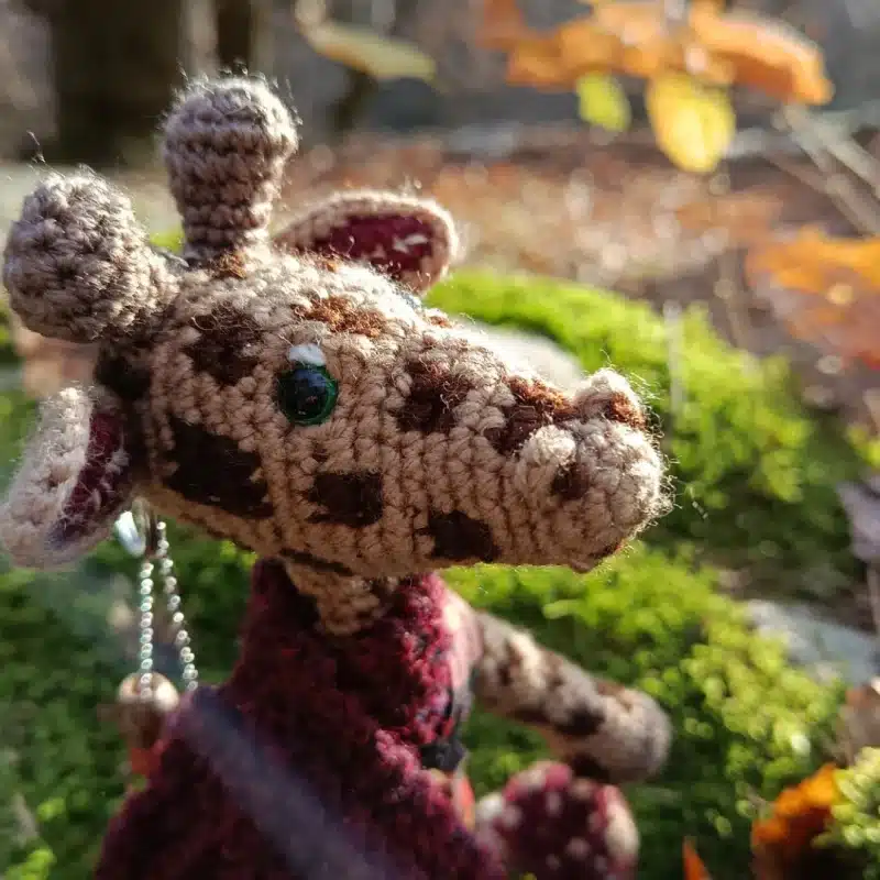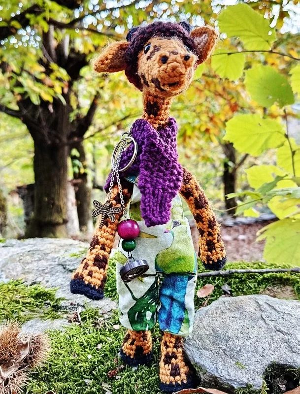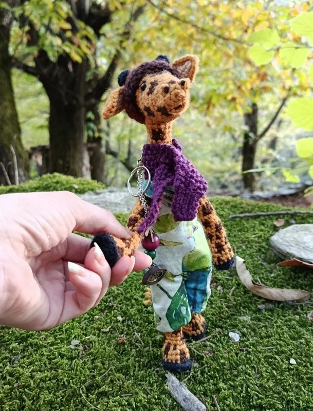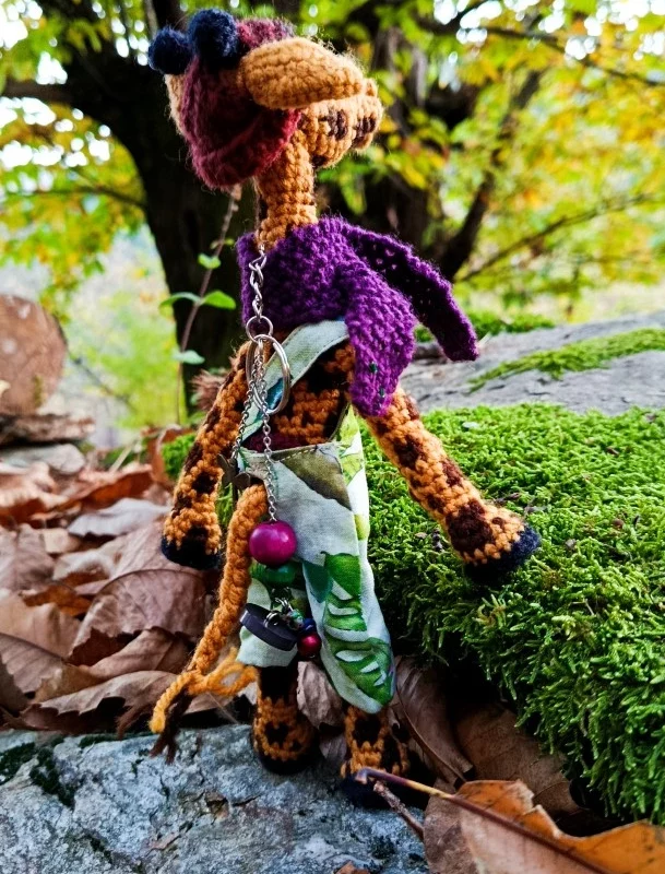 Les Porte-Clés (ou Talisman) qui font Lever la Tête 🗝️🦒 🦒 Altaïra — la Girafe des Sous-Bois Célestes Exploratrice discrète & rêveuse de haute altitude- crochetée à la main, acrylique, poly-cotons , boutons apprêt