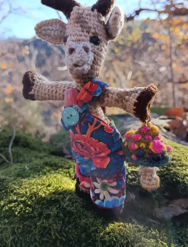 Porte-clés « Qui rend chèvre », Biquette 🐐 Bohémine des Bois – la biquette des cœurs libres – crochetée à la main, acrylique, poly-cotons , boutons apprêt