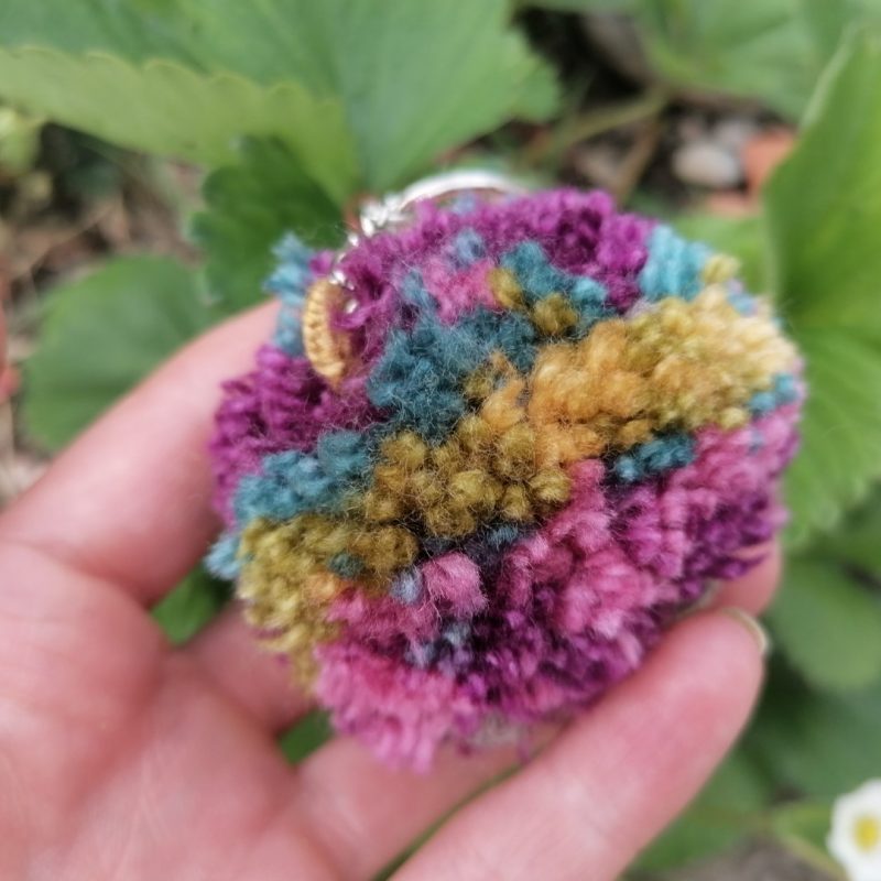 - laine acrylique,fibre cardée mesure: 6,5 cm de diamètre sans l’apprêt porte-clefs Longueur du porte-clés avec apprêt : 10.5cm environ