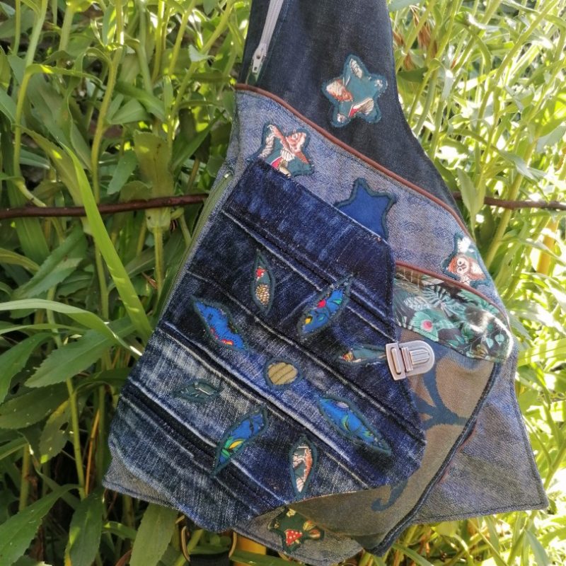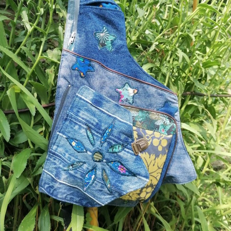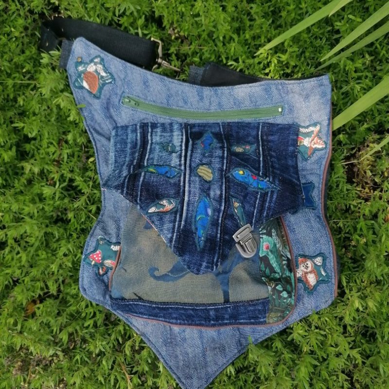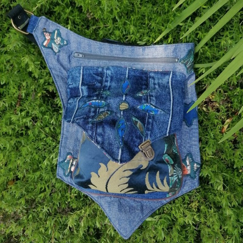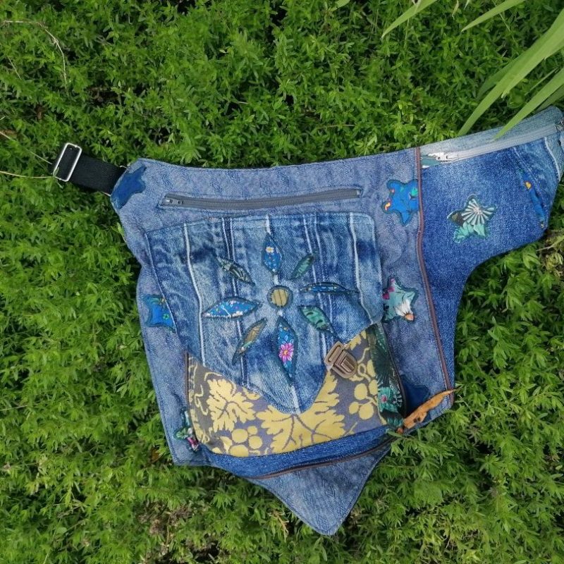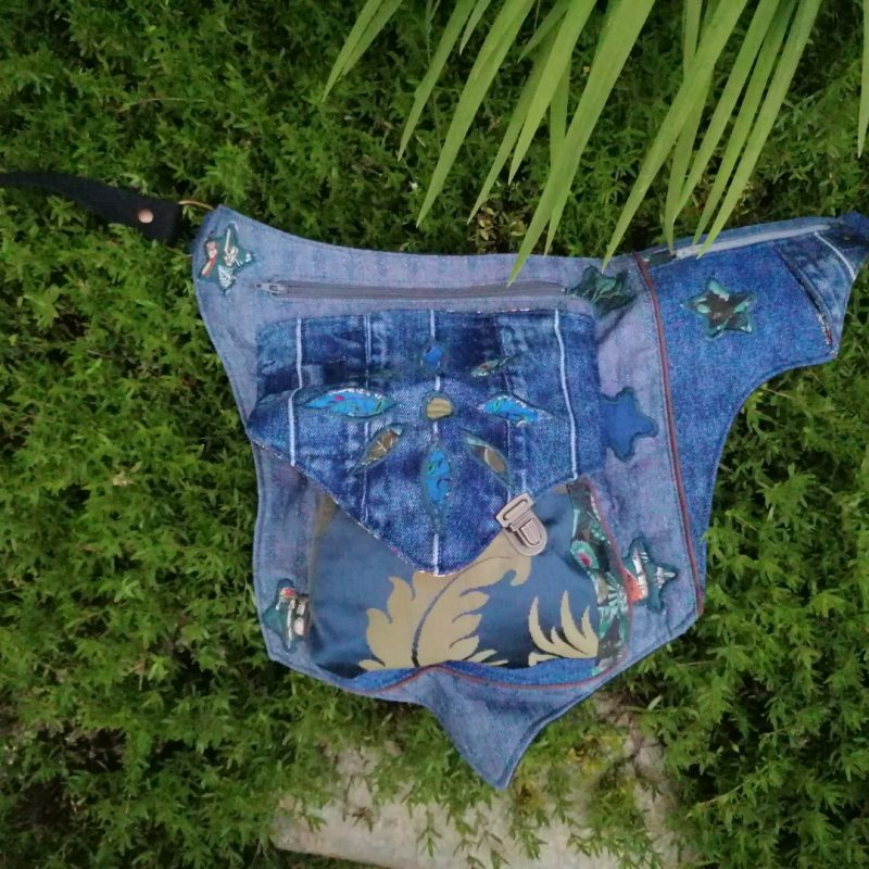 Sac ceinture, Ratapenada Édition « bleu star jean » , tissus d’ameublements jeans, cotons 3 à Alexia G