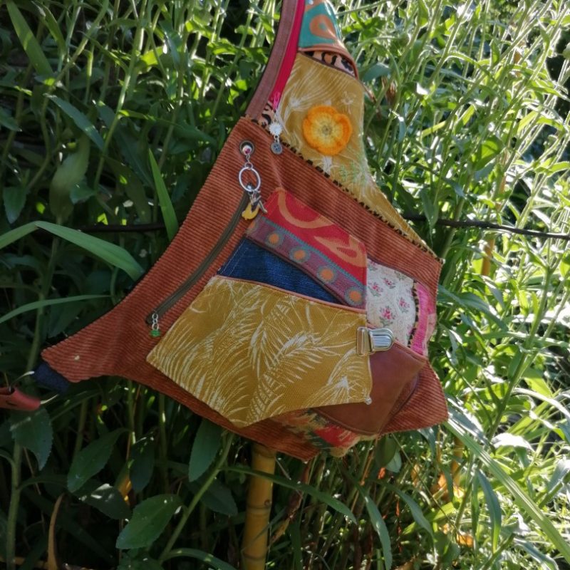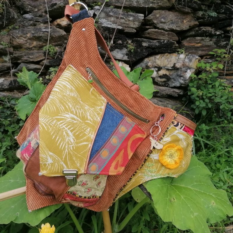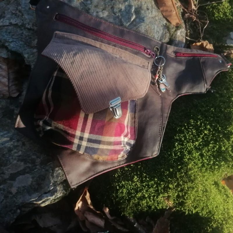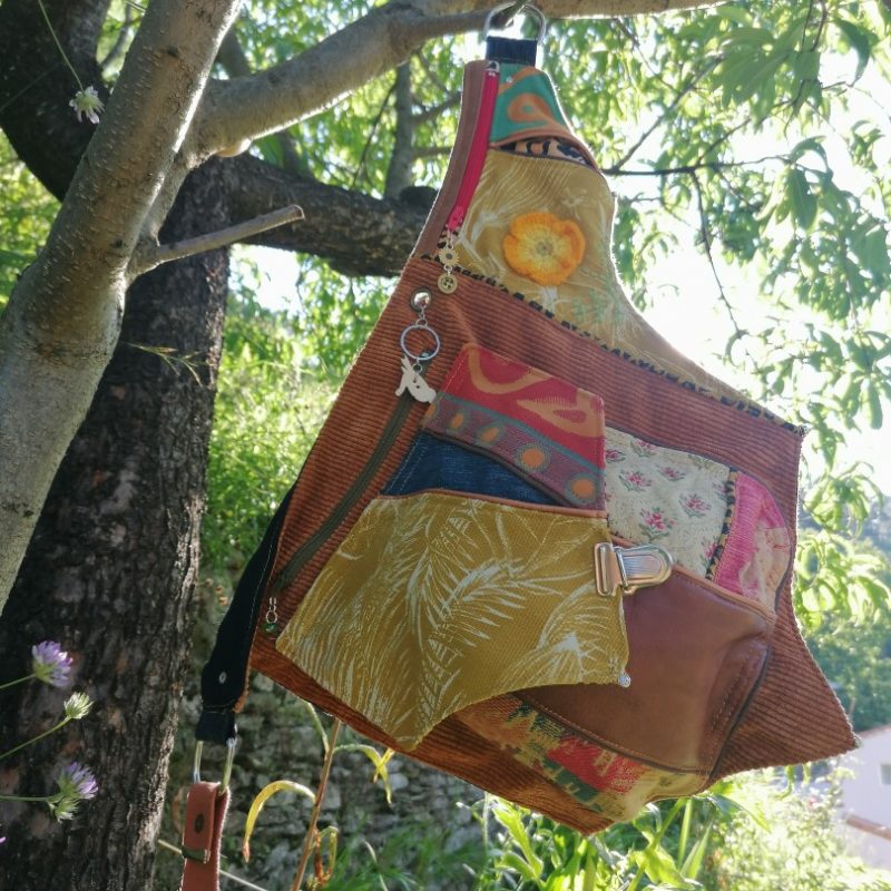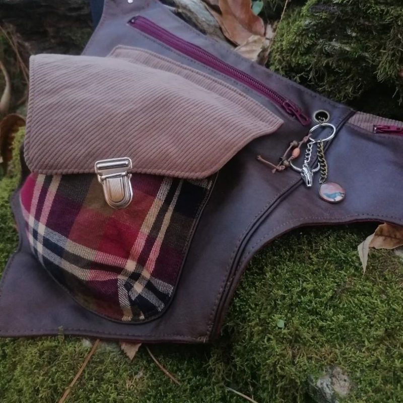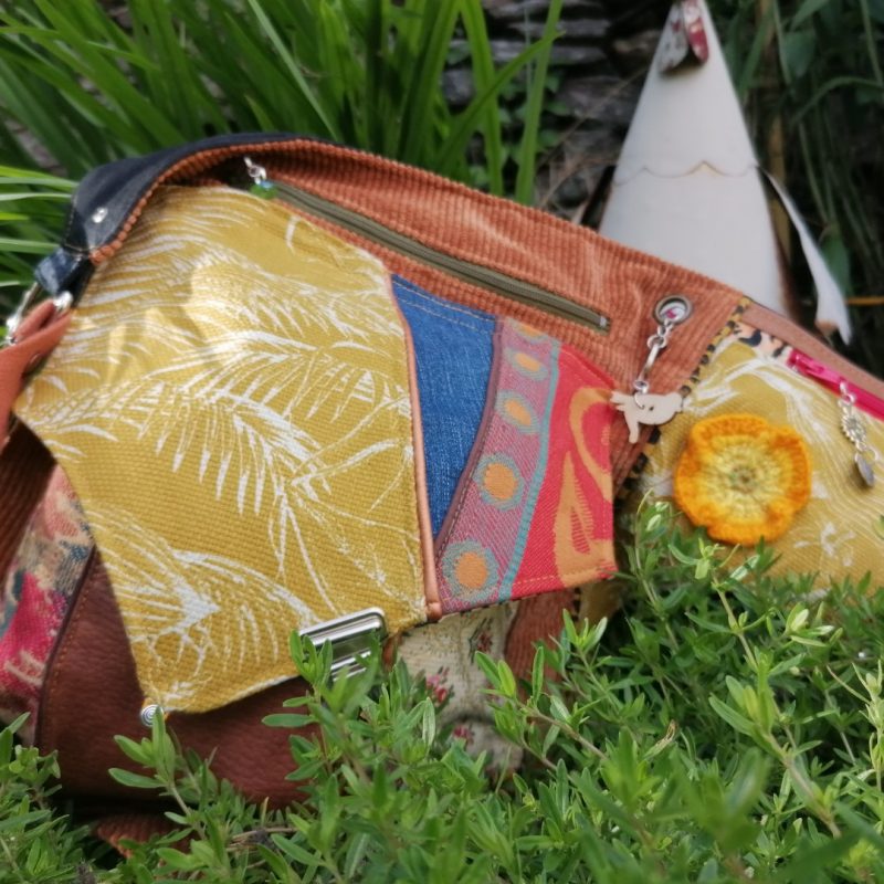 Sac ceinture, Ratapenada collection « Balade seventies à l’orée d’une clairière highlandaise », nubuck, tissus d’ameublement…. et cotons