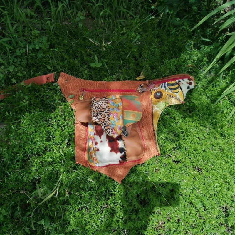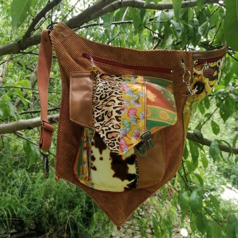 Sac ceinture, Ratapenada Édition « Butine l’automne », similis , tissus d’ameublement , fausse fourrure et cotons