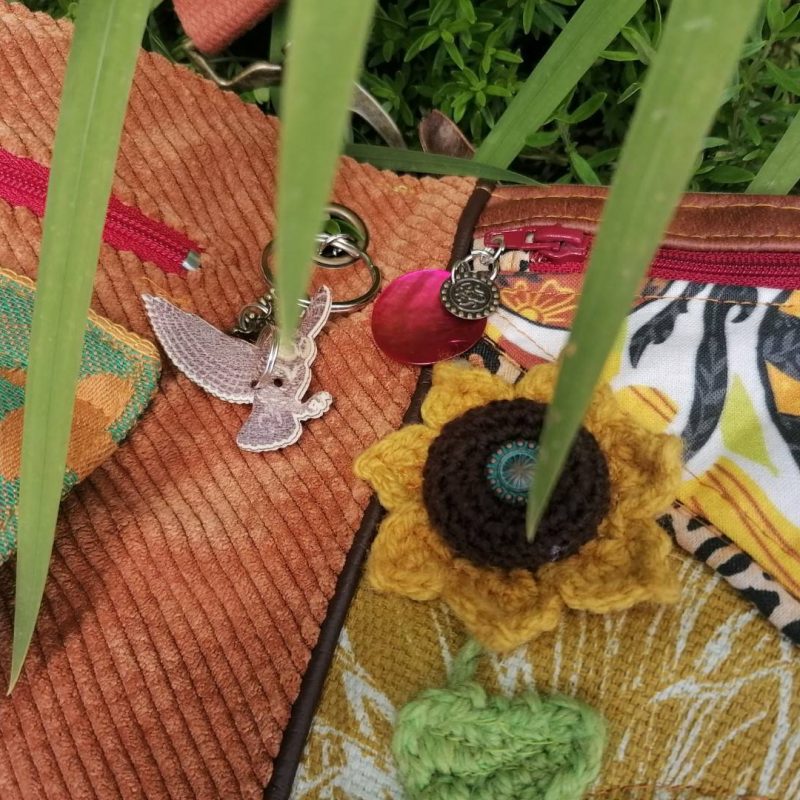 Sac ceinture, Ratapenada Édition » Flowers power California Vibes », velours, tissus d’ameublement et cotons