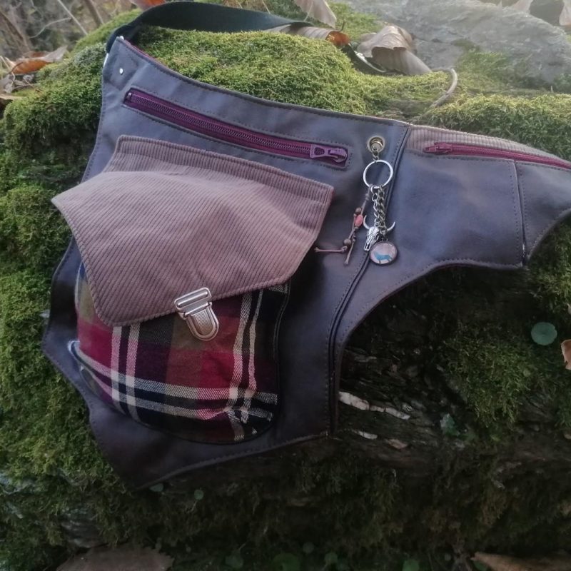 Sac ceinture, Ratapenada Édition « Witch Scottish », simili, velours, tartan coton bordeaux