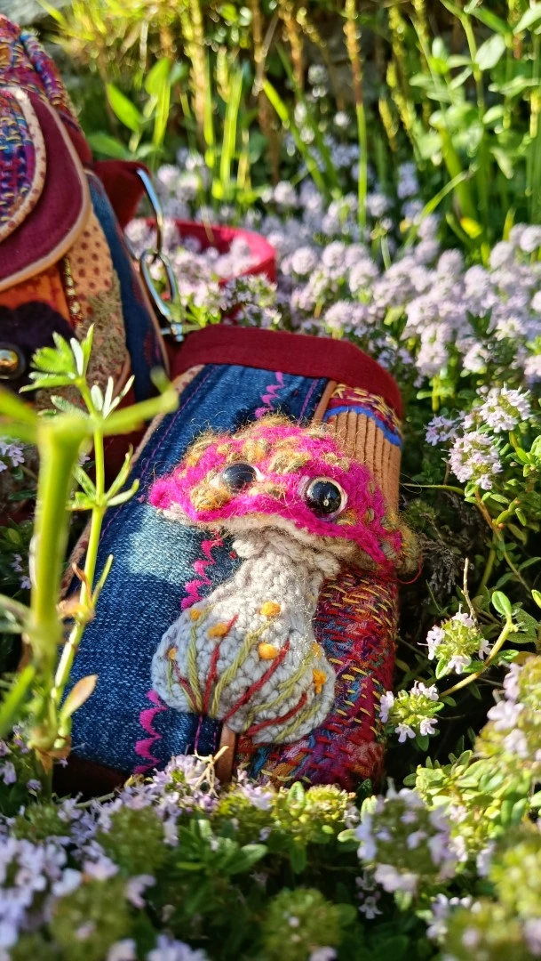 Il est pourvu d’une présence intrépide et pleine de caractère : un Champi’fou unique au crochet, né de l’alliance entre l’aspect brut du jean upcyclé et le souffle du « POP » qui anime cette collection. Il est le gardien solitaire, scellé par l’aiguille pour protéger vos trésors les plus sacrés.