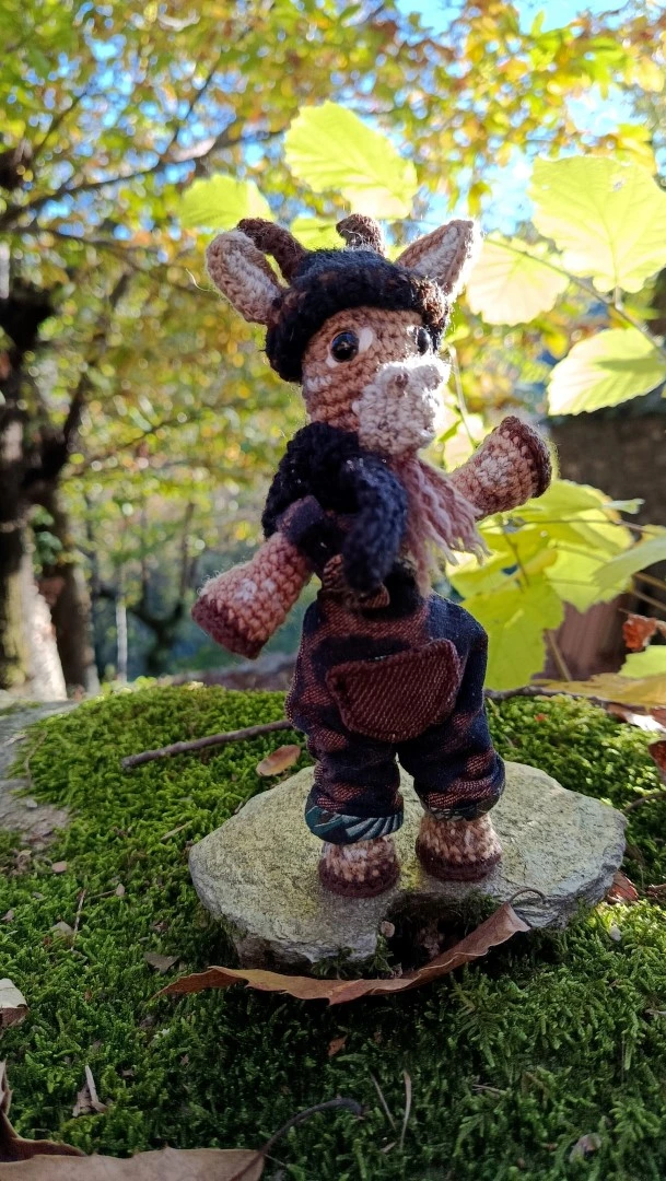 Crocheté à la main dans mon atelier, Petit Bouc Larcin porte fièrement :