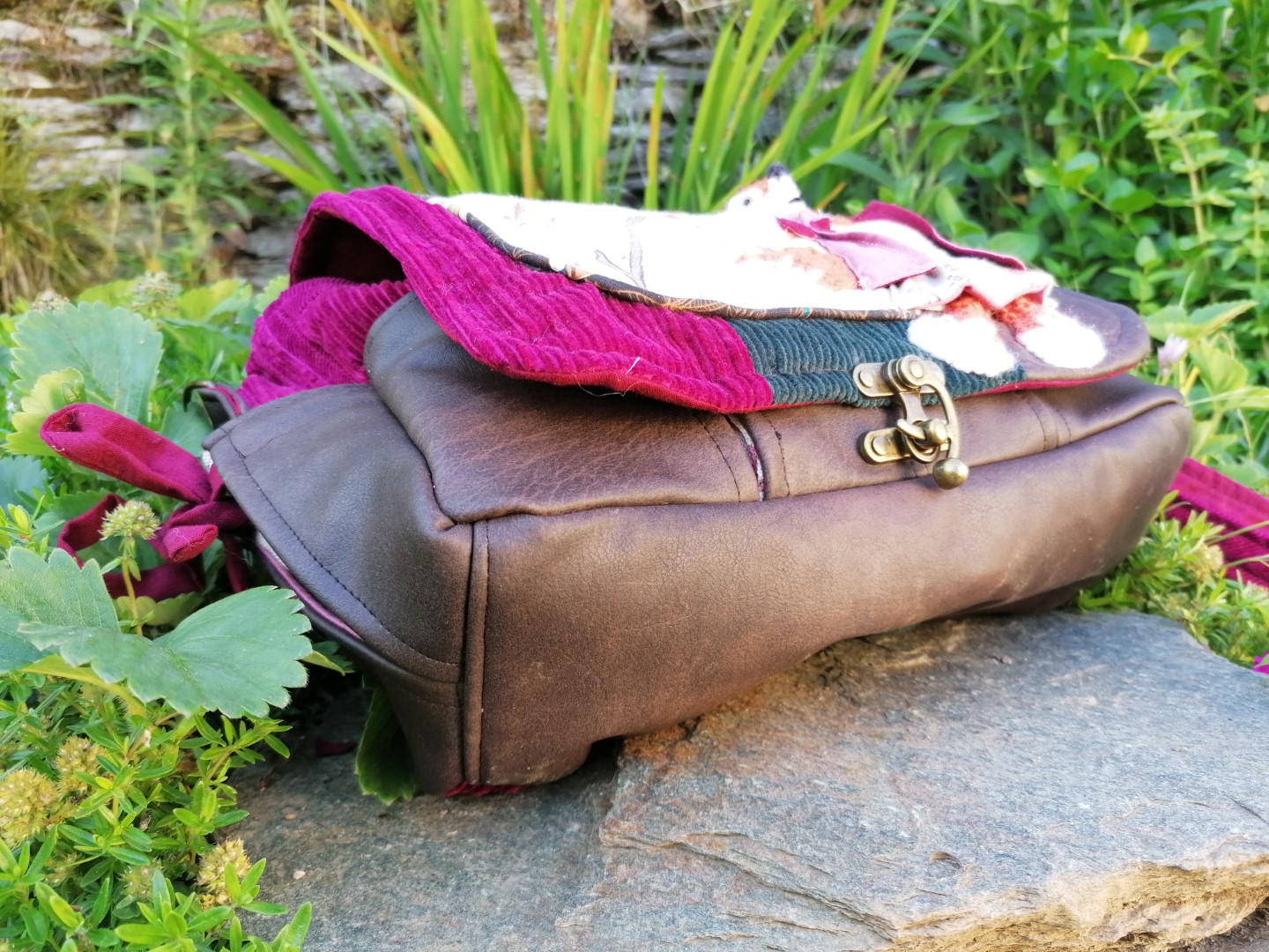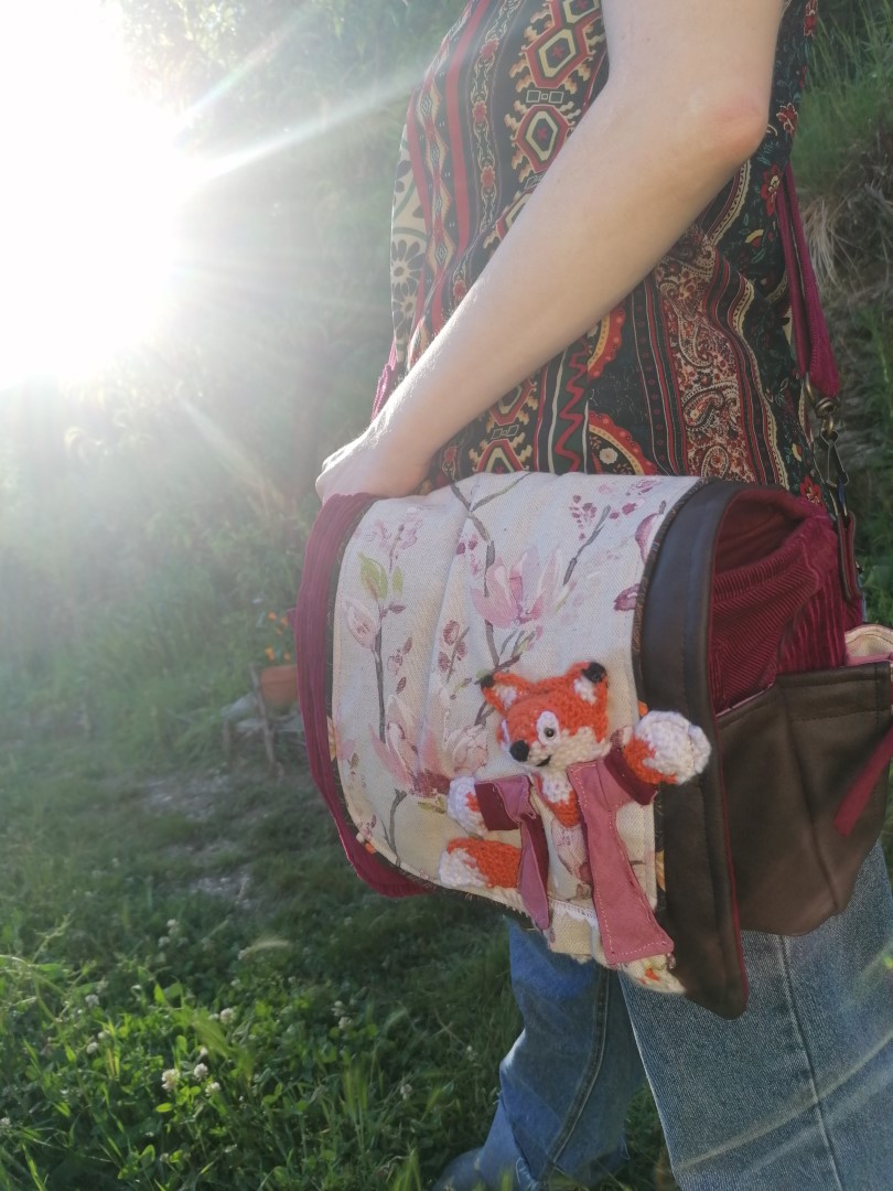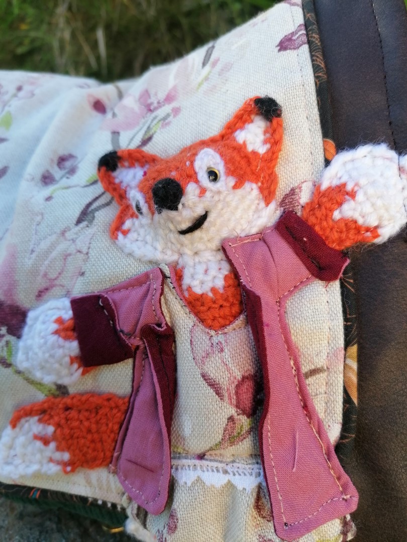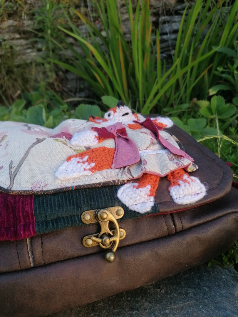 Petite Besace de survie, « Miss Fox » , motif renard 3d, velours, simili et coton