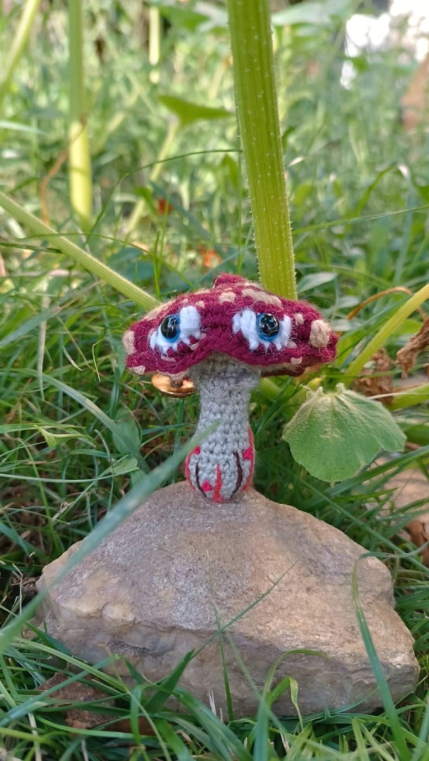 - Dimensions : Amanite : 8 cm de hauteur, 7 cm de diamètre du chapeau. Avec l’anneau : 13 cm de hauteur.