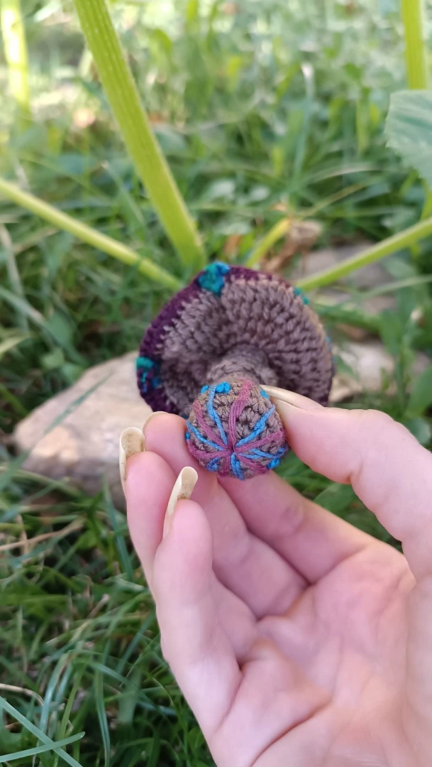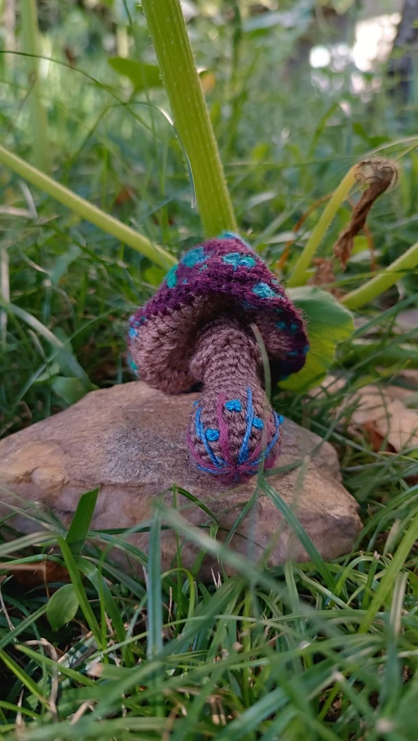 Voici une jolie Amanite violet et bleu vert sporifique, une pièce unique crochetée à la main, prête à prendre place parmi vos clés. Inspiré par les champignons et la chanson culte