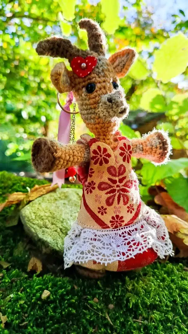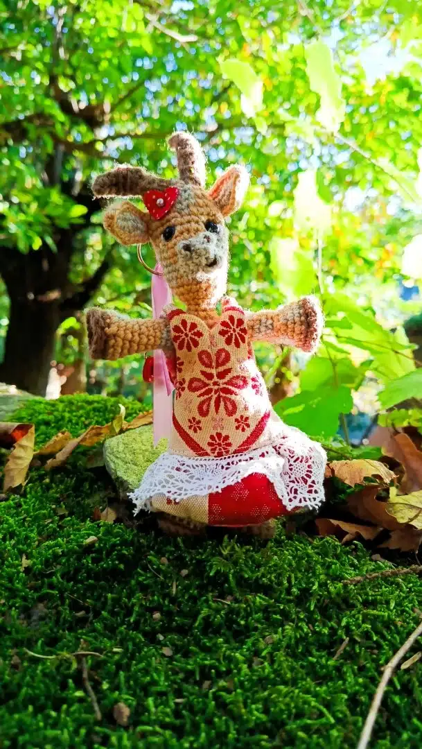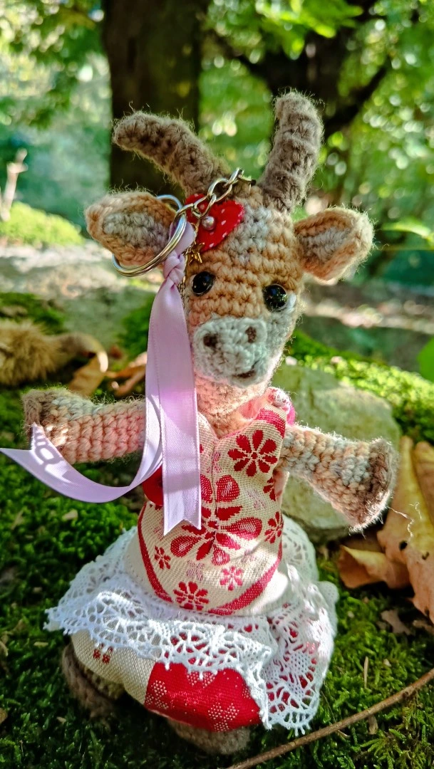 Voici ton talisman artisanal : une biquette crochetée à la main, tendre et espiègle, née du fil, de la passion et d’un brin de magie Salamandingue.