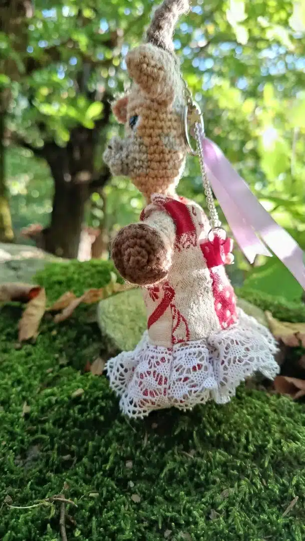 Porte-clés « Qui rend chèvre », Biquette 🐐 ROUGELINE DU CŒUR — La Messagère des élans tendres – crochetée à la main, acrylique, poly-cotons , boutons apprêt