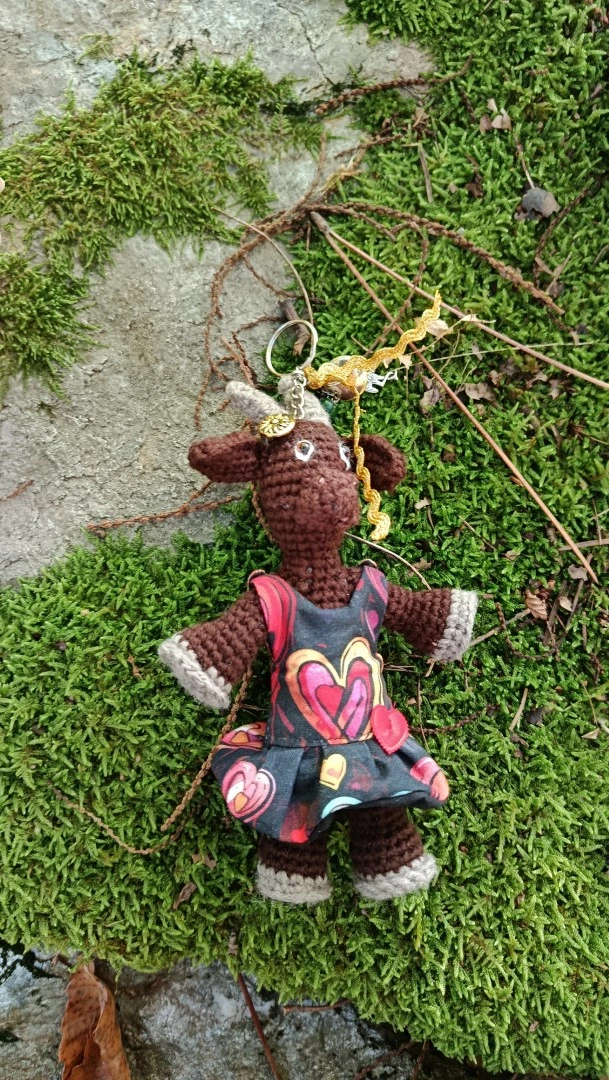 Porte-clés « Qui rend chèvre », Biquette à cœur – crochetée à la main, acrylique, poly-cotons , boutons apprêt
