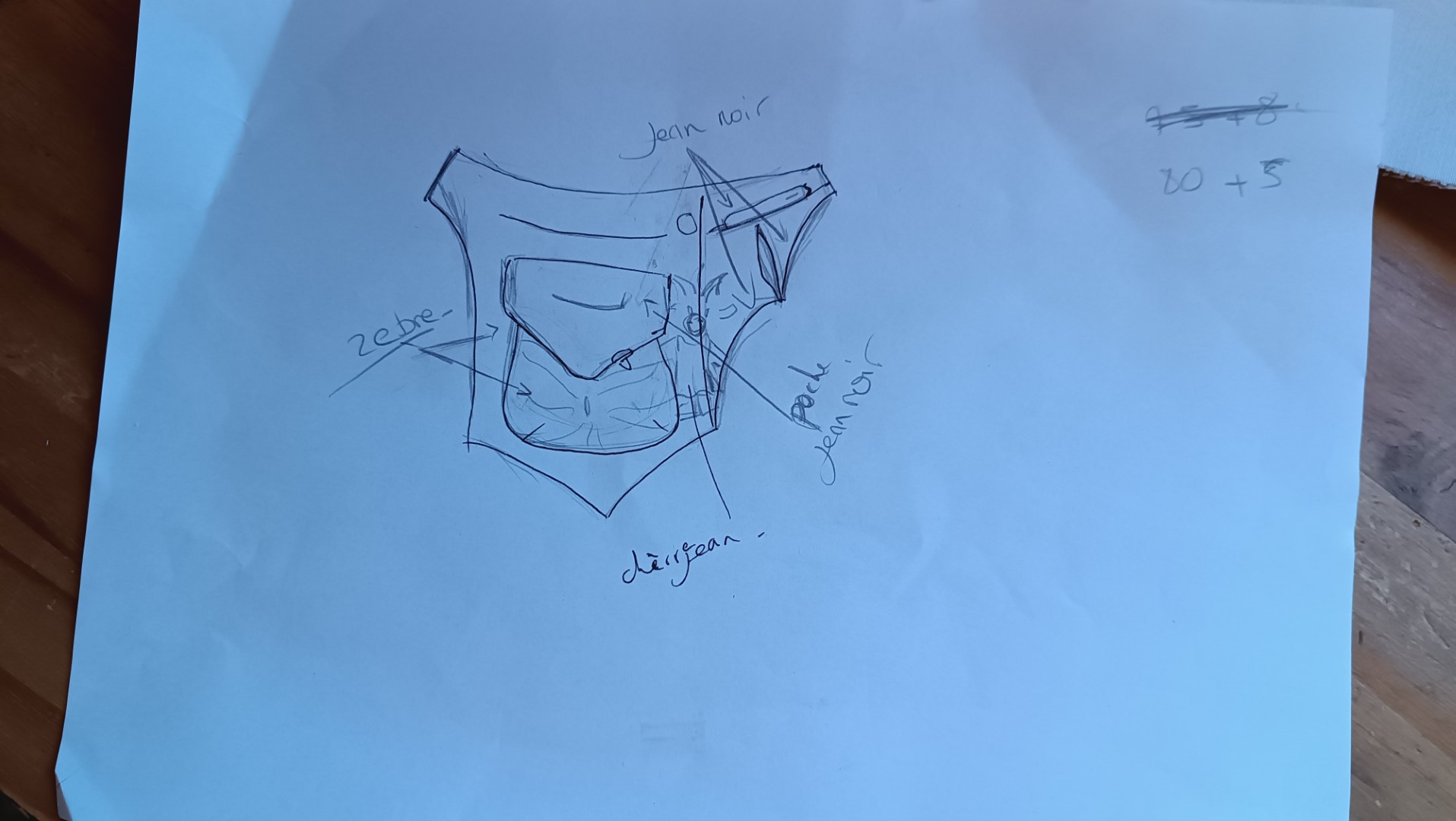 Poche avant : Jean noir également, avec zip visible et couture nervurée – un classique revisité.