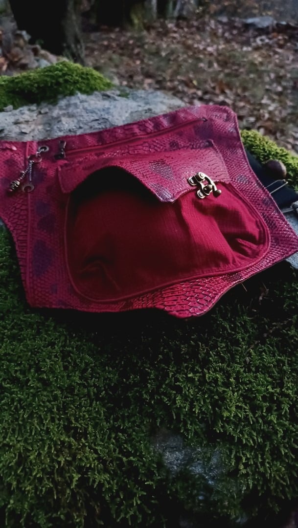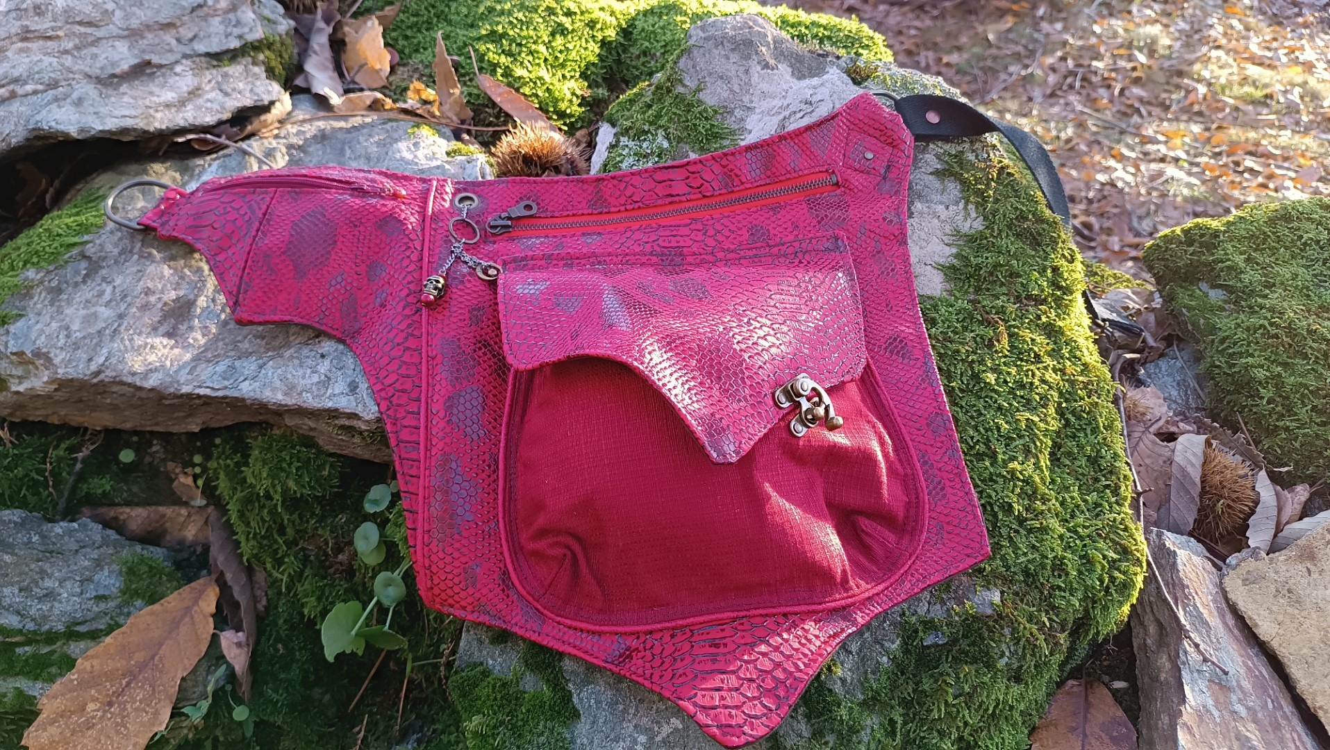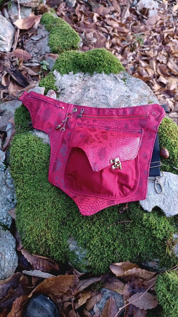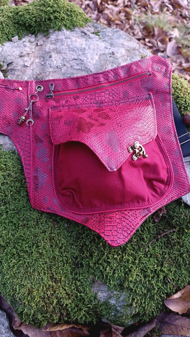Sac ceinture, Ratapenada « Satanas » – L’Appel des Abysses, Simili Snake Rouge et Toile Bordeaux
