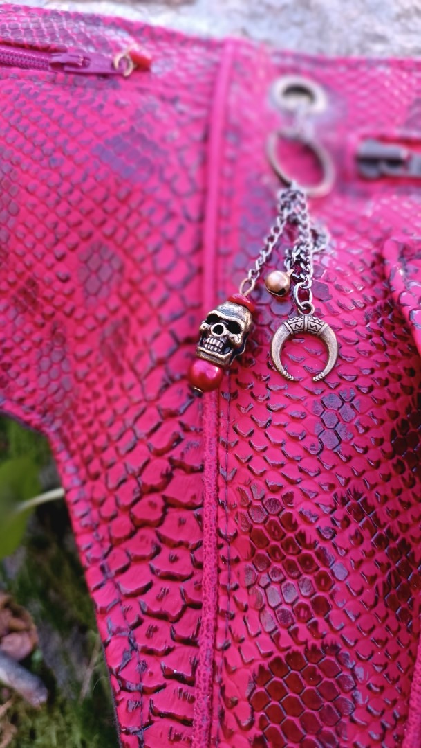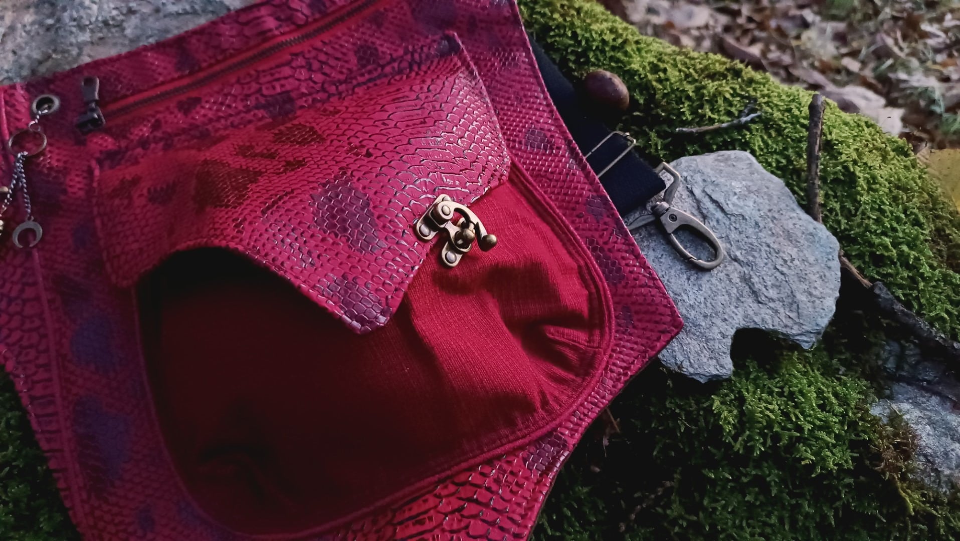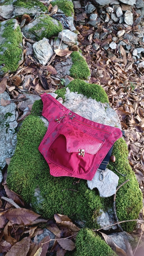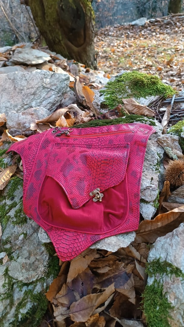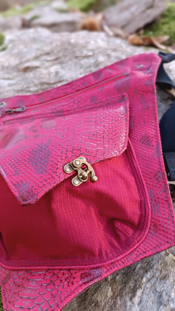 Sac ceinture, Ratapenada « Satanas » – L’Appel des Abysses, Simili Snake Rouge et Toile Bordeaux